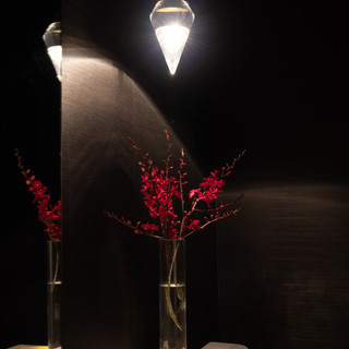 Took a bit to get here, but it was well worth the effort. We played with the idea of using textured tile on the walls, it was going to be too expensive. We priced fabrication for a couple different custom sink options, again, too expensive. Nothing was really getting us excited until we found this slab of White Macaubas Quartzite from Pental Surfaces. Everything fell into place. Jen drew up this incredible sink, it matched the black grass cloth wallpaper we had already picked out from York Wallcoverings, found these incredible Berkeley pendants from Arteriors, convinced Max a bathroom this incredible needs a Fantini faucet and voilà—a showstopper.